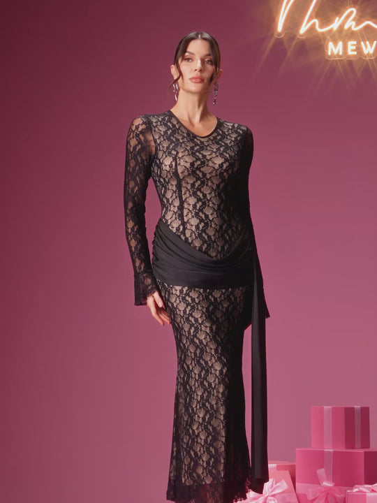 Discover timeless glamour with the Alcides Flare Sleeve Lace Draped Maxi Dress, a showstopping piece designed for those who refuse to blend in. Luxurious lace detailing pairs beautifully with flowing draped fabric that moves with grace and intention. The dramatic flare sleeves add an unexpected touch of sophistication, framing your silhouette while creating an air of effortless elegance. From formal galas to upscale evening events, this maxi dress commands attention with its refined construction and flattering proportions. Invest in a gown that celebrates your individuality and ensures you'll be remembered long after the night ends.
