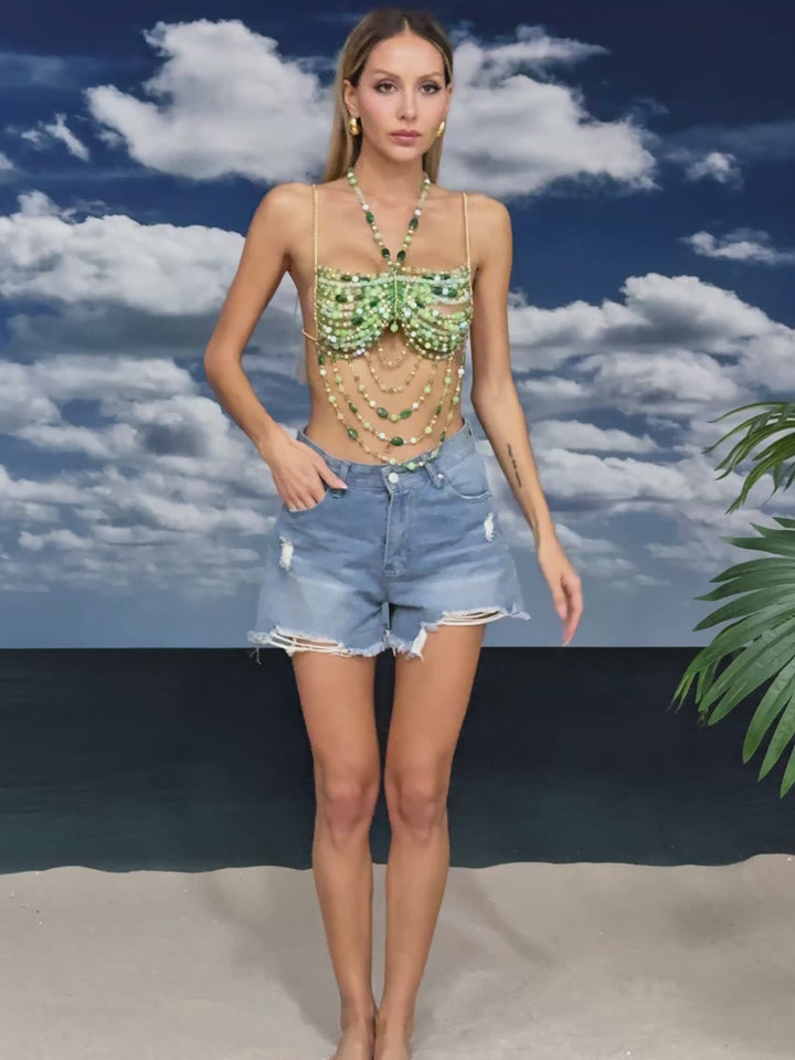 حمالة صدر كاتلين المزينة بالخرز والأحجار الكريمة باللون الأخضر