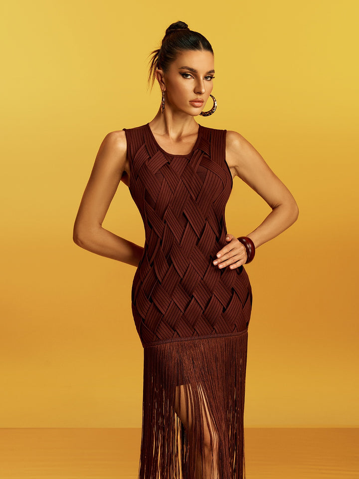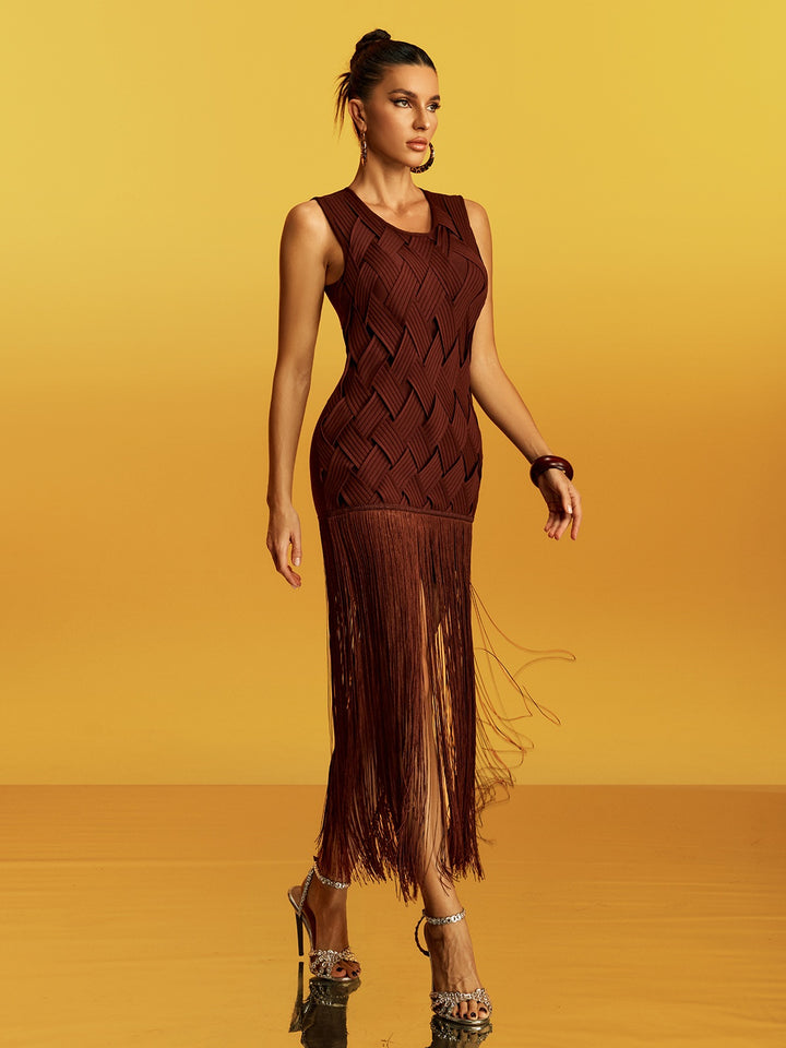 Globula Sleeveless Fringe Bandage Maxi Dress
