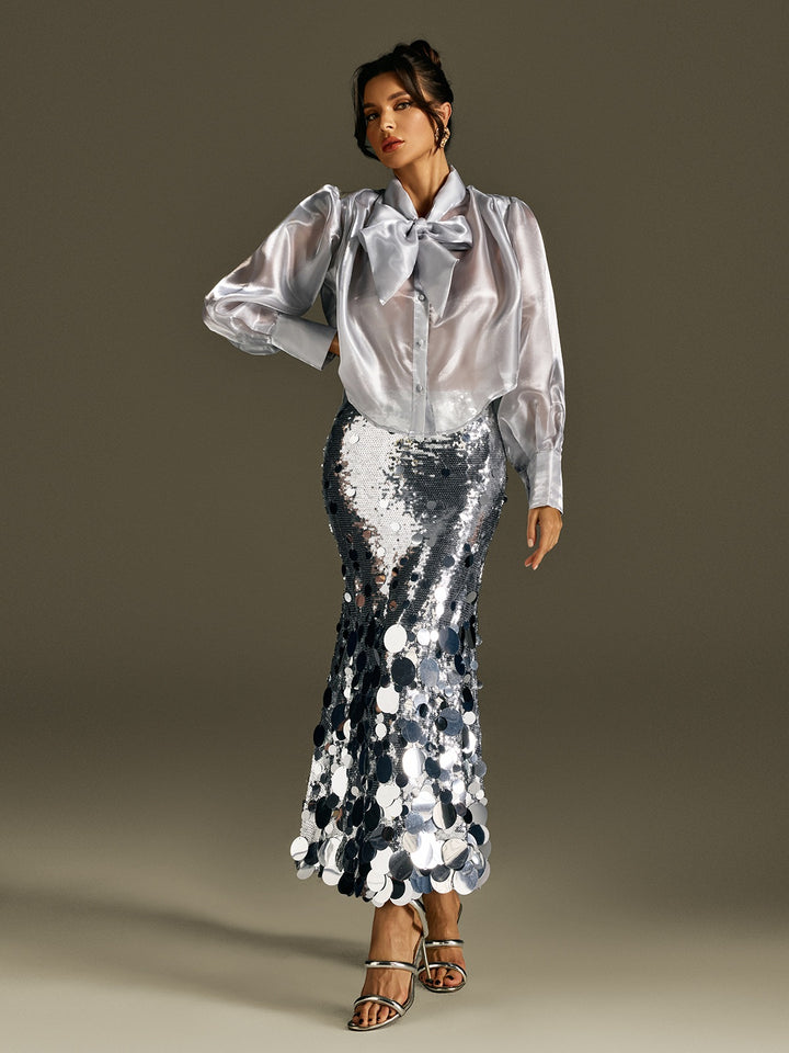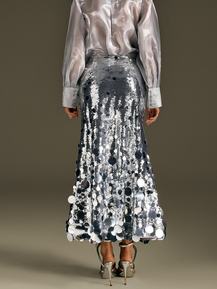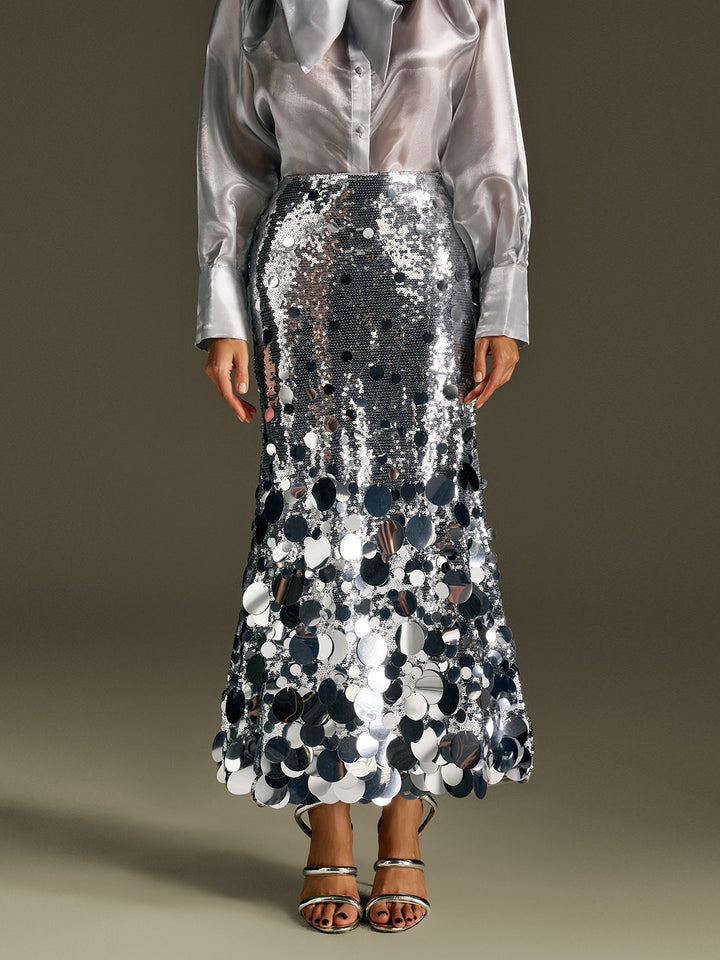 The Glomara Round Sequin Skirt in Silver showcases exceptional construction through its comprehensive sequin coverage and precision circular design. The silver sequins create dimensional light reflection while maintaining cohesive visual impact across the silhouette. This skirt demonstrates versatile styling potential—equally effective paired with minimalist tops for balanced proportion or layered under sheer overlays for added dimension. The quality sequin application resists displacement and maintains lustrous appeal through repeated wear and care. The round silhouette provides flattering coverage while the metallic finish positions this piece as a sophisticated choice for evening occasions and celebrations. A well-engineered design that rewards both immediate visual impact and practical wearability.