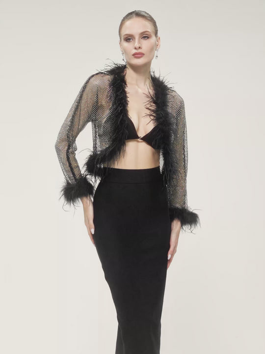 Jjetmixa Rhinestone Mesh Faux Fur Top