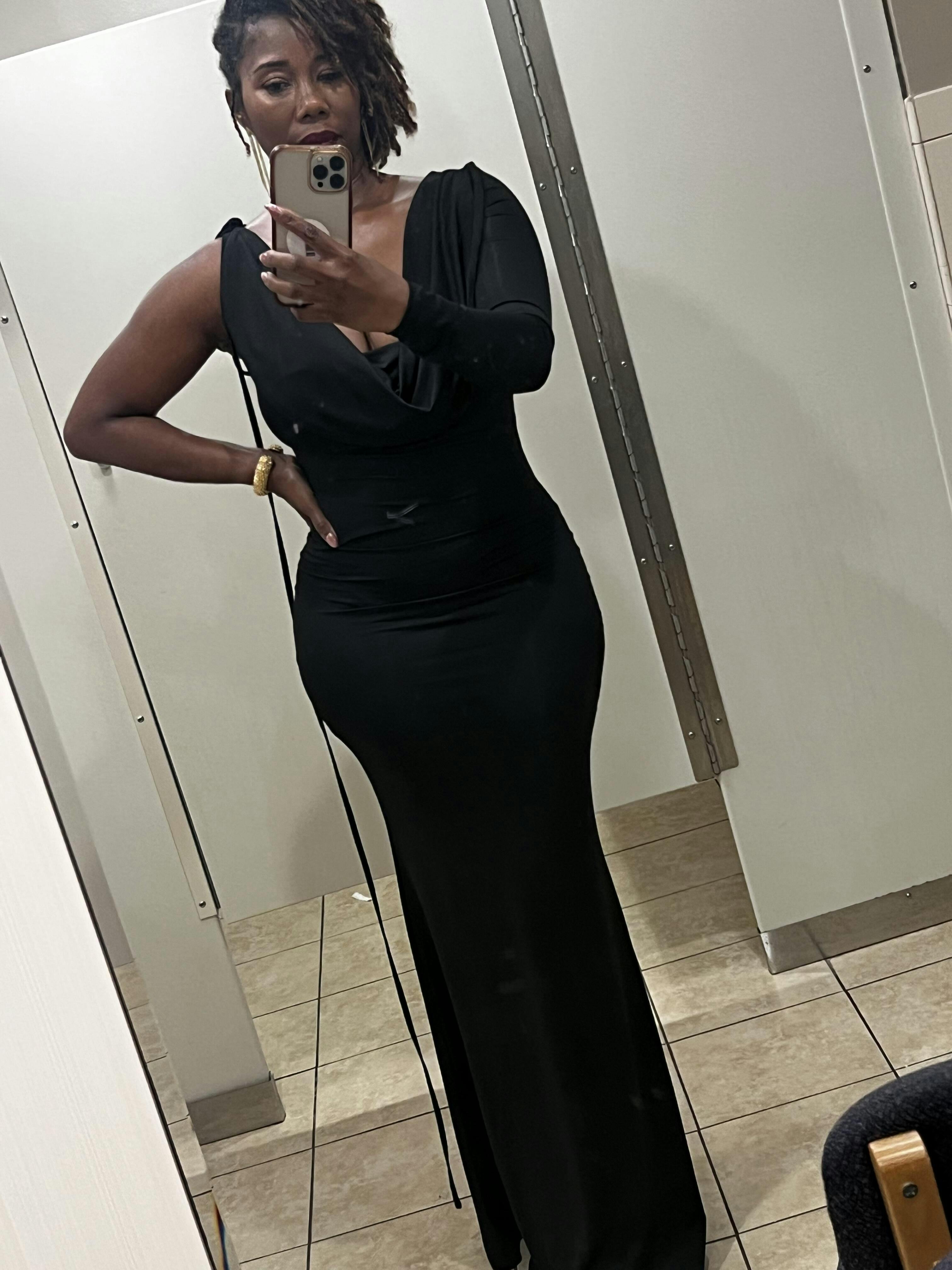 فستان ميليورا ماكسي بكتف واحد وظهر مكشوف باللون الأسود