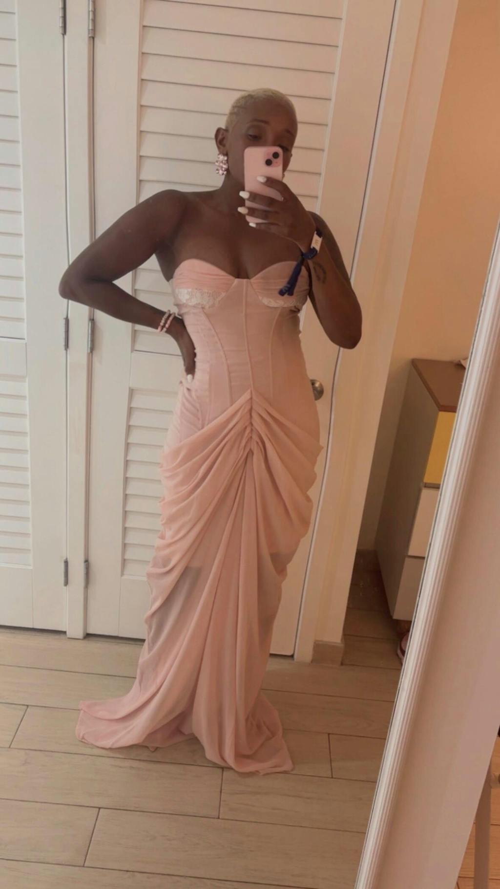 Elevate your evening wear with the Ordell Strapless Ruched Mesh Maxi Dress. This elegant gown features delicate ruching along soft mesh fabric to flatter your silhouette effortlessly. Its strapless design highlights your neckline and shoulders, making it perfect for formal events or special evenings. Experience a blend of sophistication and comfort with a dress that moves gracefully with you while turning heads at every occasion.