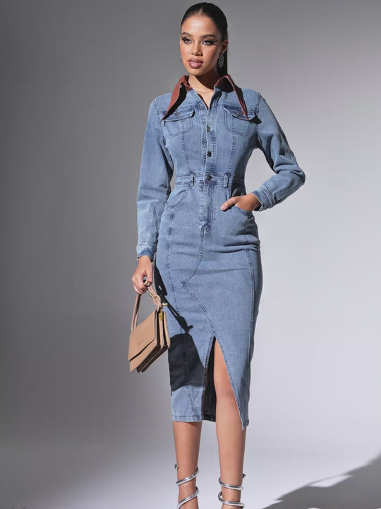 Elevate your wardrobe with the Plthar Folded Collar Split Midi Dress, designed for effortless elegance. The sophisticated folded collar adds a polished touch, while the tasteful side split offers a subtle hint of allure and freedom of movement. Crafted to flatter your silhouette, this midi dress transitions seamlessly from day to night, making it an essential piece for versatile style and confident wear.
