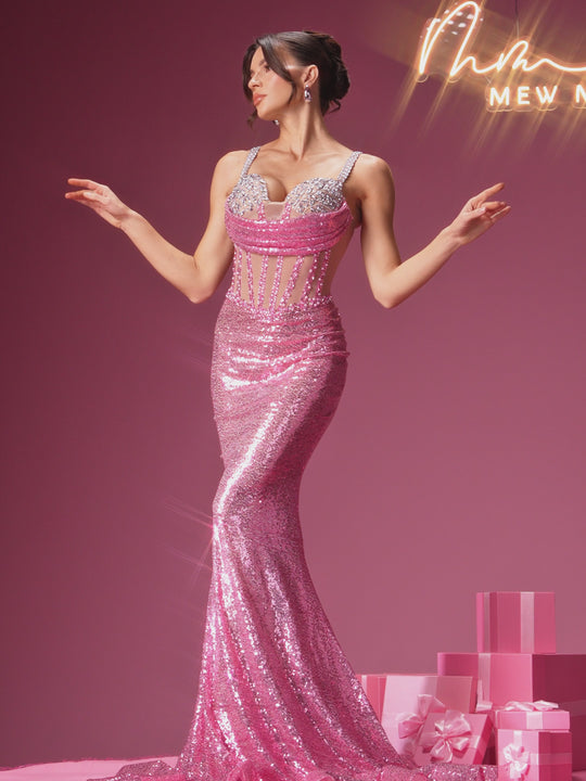Qavrix Sequin Pearl Mermaid Maxi Dress