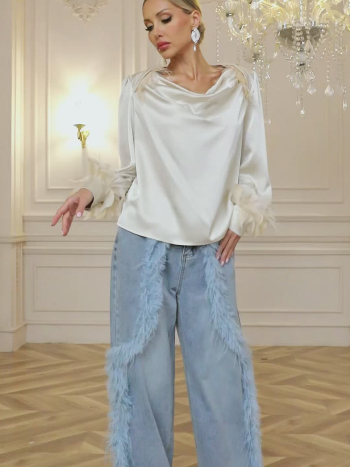 Elevate your casual style with the Qyrax Feather Trimmed Jeans. These jeans blend classic denim comfort with unique feather detailing, adding a playful, eye-catching touch to your wardrobe. Perfect for those who want to stand out effortlessly, they offer both style and versatility for any occasion. Make your outfit unforgettable with a subtle statement that enhances your everyday look.