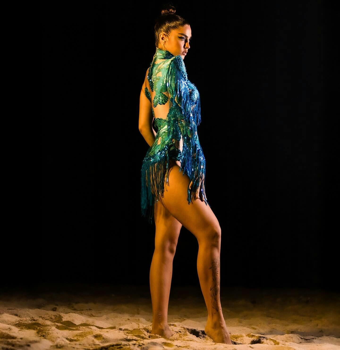 بدلة جسم شاتورا بكتف واحد مزينة بشراشيب من أحجار الراين باللون الأزرق