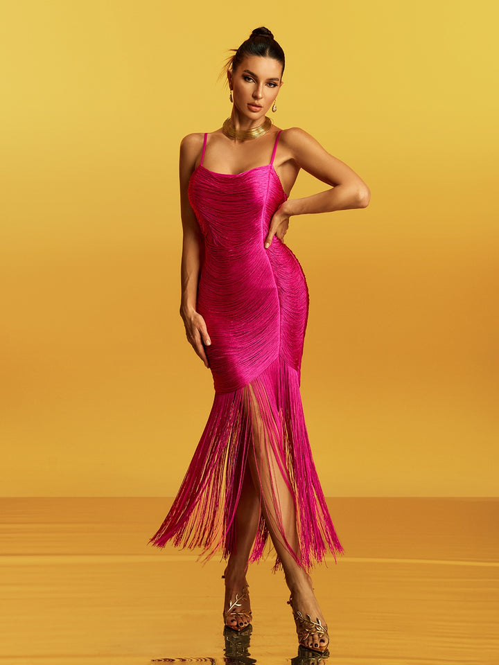 Elevate your style with the Syriel Spaghetti Fringe Maxi Dress, a graceful blend of elegance and movement. Featuring delicate spaghetti straps and playful fringe detailing, this maxi dress offers a flattering silhouette that flows effortlessly with every step. Perfect for evenings out or special occasions, it ensures you stand out with a captivating, modern charm. Embrace comfort without compromising on style in this versatile statement piece.