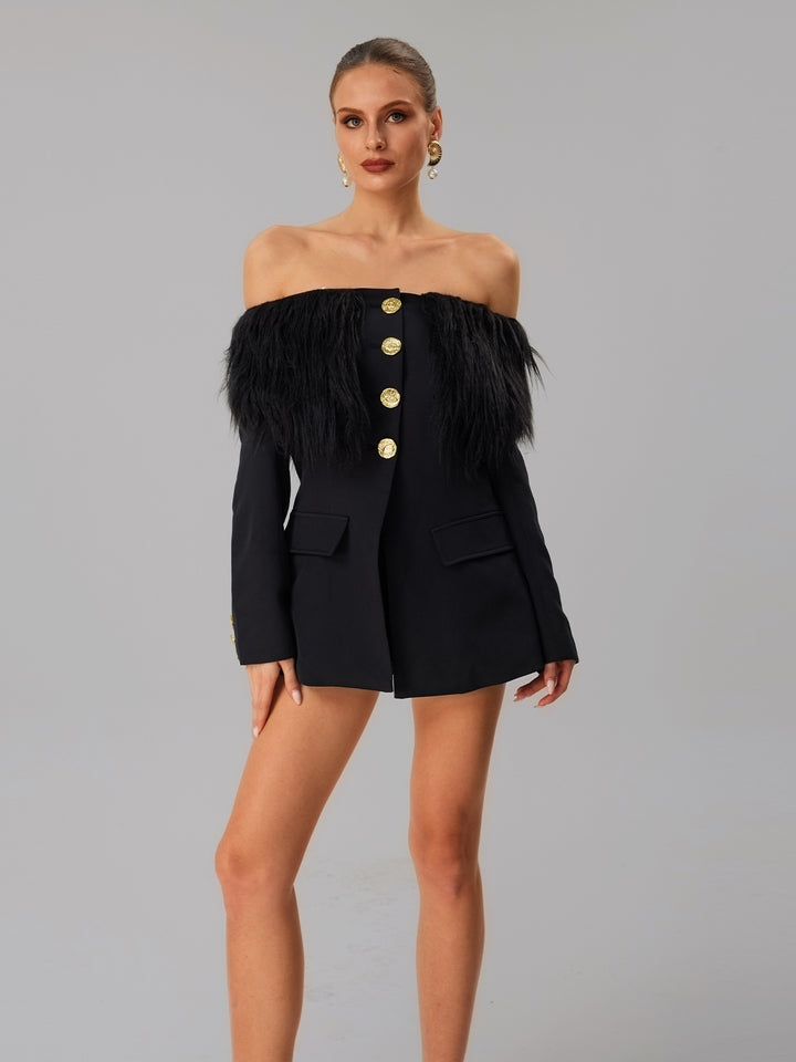 Elevate your style with the Vazzar Off Shoulder Fringe Blazer, a bold statement piece that blends contemporary design with elegant flair. Its off-shoulder cut highlights your neckline, while delicate fringe detailing adds movement and edge. Perfect for making an unforgettable impression at events or nights out, this blazer offers a chic twist on classic tailoring to boost your confidence and showcase your unique fashion sense.