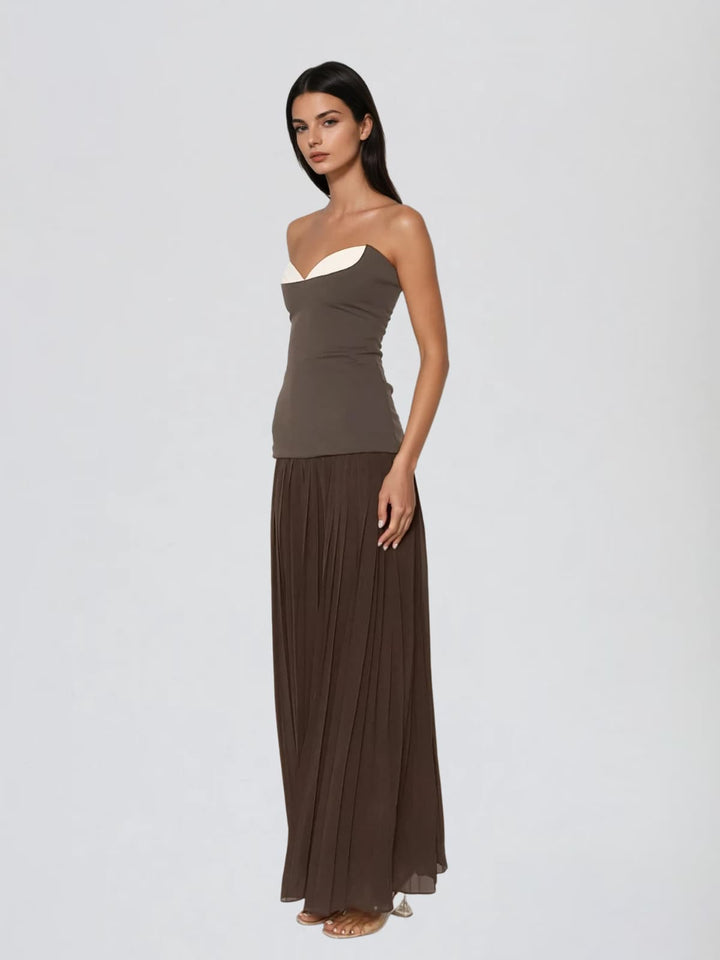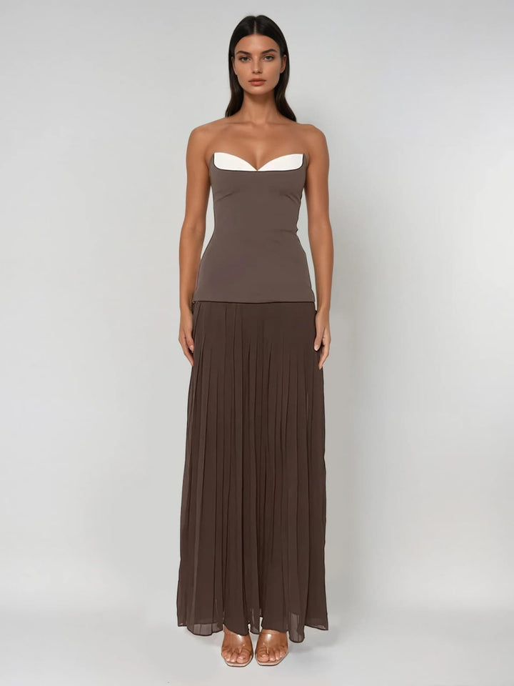 Wolran Strapless Pleated Maxi Dress