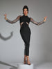 Leonid Long Sleeve Rhinestone Mesh Dress