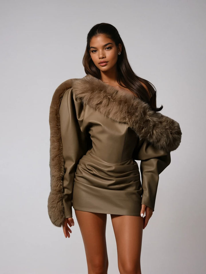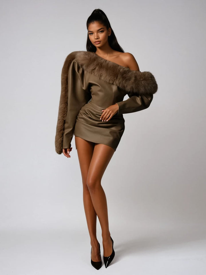 Elevate your style with the Dioptra One Shoulder Leather Faux Fur Mini Dress. This striking piece combines sleek leather with soft faux fur for a bold, luxurious look. Its one-shoulder design adds an alluring asymmetrical flair, while the mini length perfectly balances sophistication and edginess. Ideal for making a statement at any event, this dress ensures you stand out with confidence and elegance.