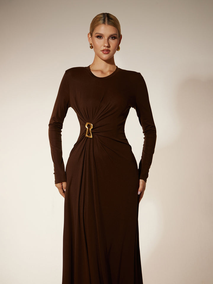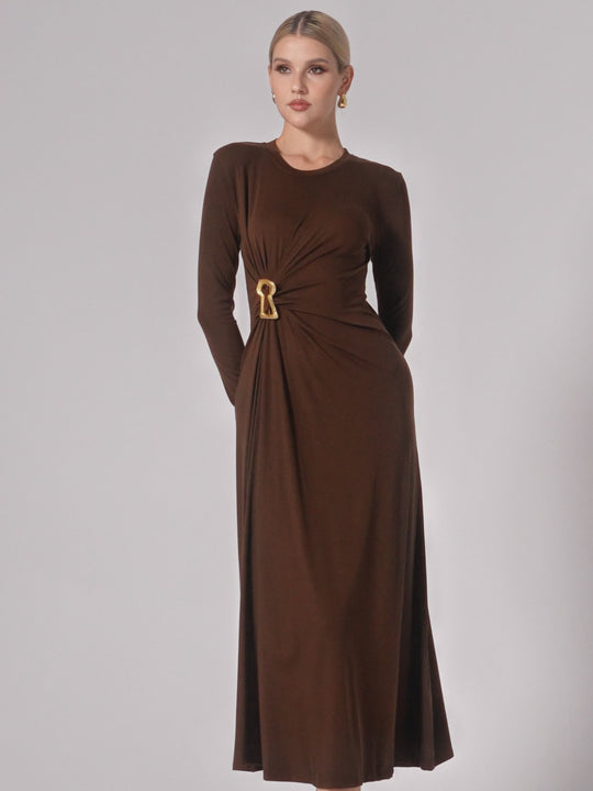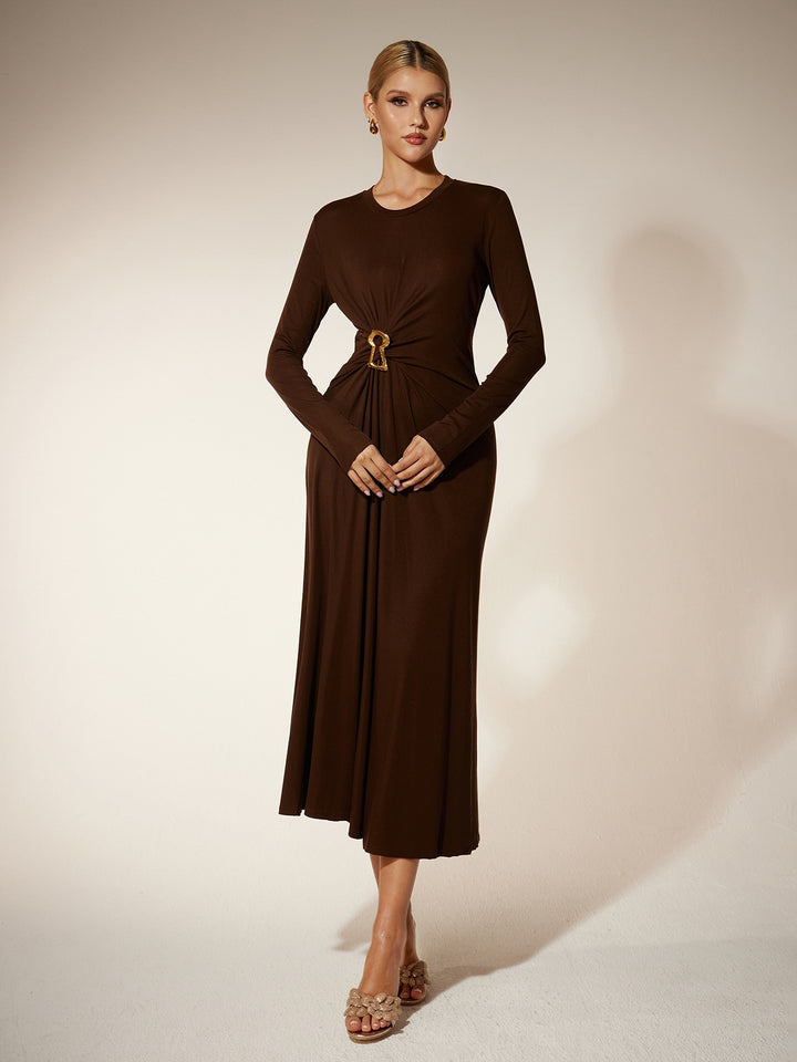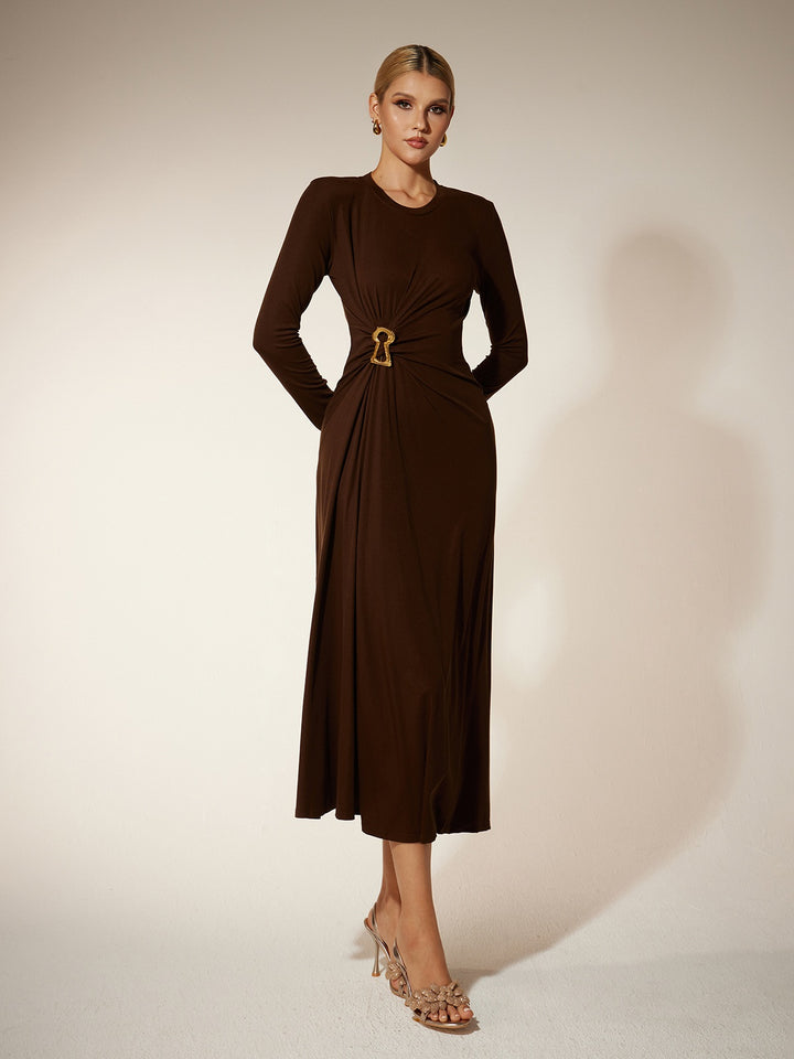 Experience understated sophistication with the Eisley Long Sleeve Ruched Midi Dress—a refined essential that works as hard as you do. The strategic ruching creates a flattering, sculpted effect that enhances your natural shape while the midi length offers timeless versatility. Long sleeves provide elegant coverage and extend your styling options across seasons and occasions. Whether you're heading to the office, attending a special event, or enjoying an upscale evening out, this dress delivers polished confidence without compromise. The clean silhouette pairs effortlessly with your favorite accessories and shoes, making it the ultimate investment piece that transitions seamlessly from season to season. Invest in a dress that proves simplicity and elegance are always in style.