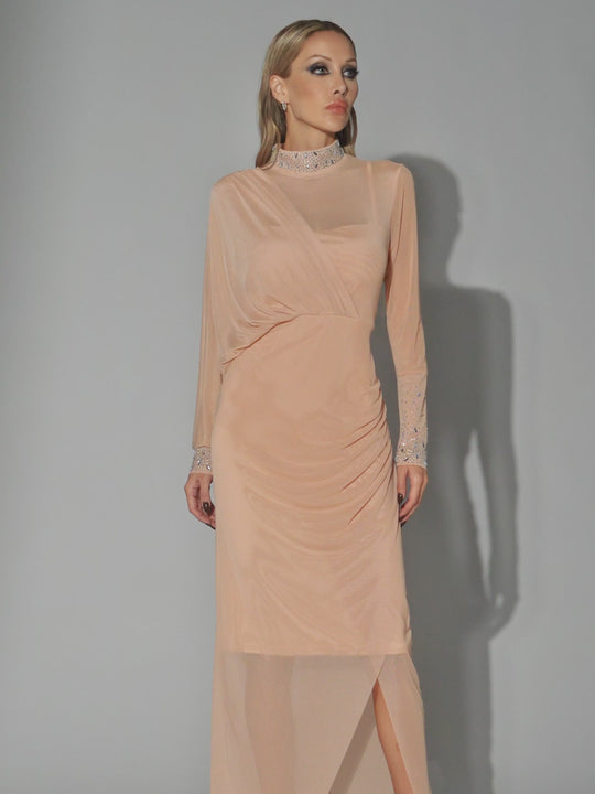 Faris Rhinestone Ruched Maxi Dress
