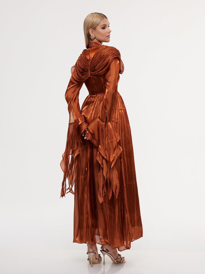 Fulguria High Neck Shawl Ruffle Maxi Dress