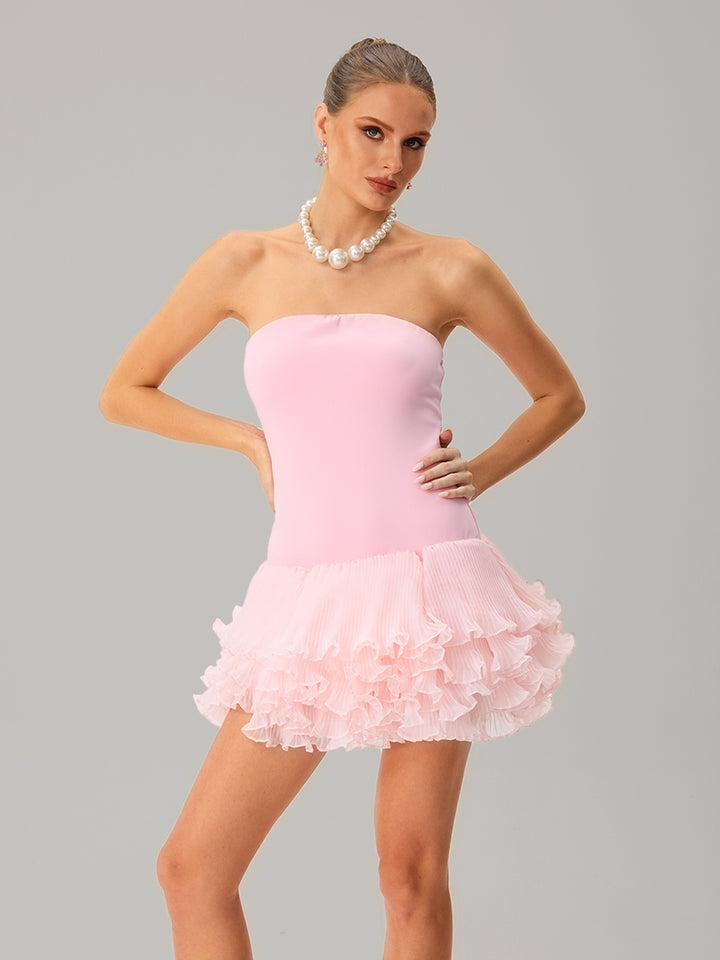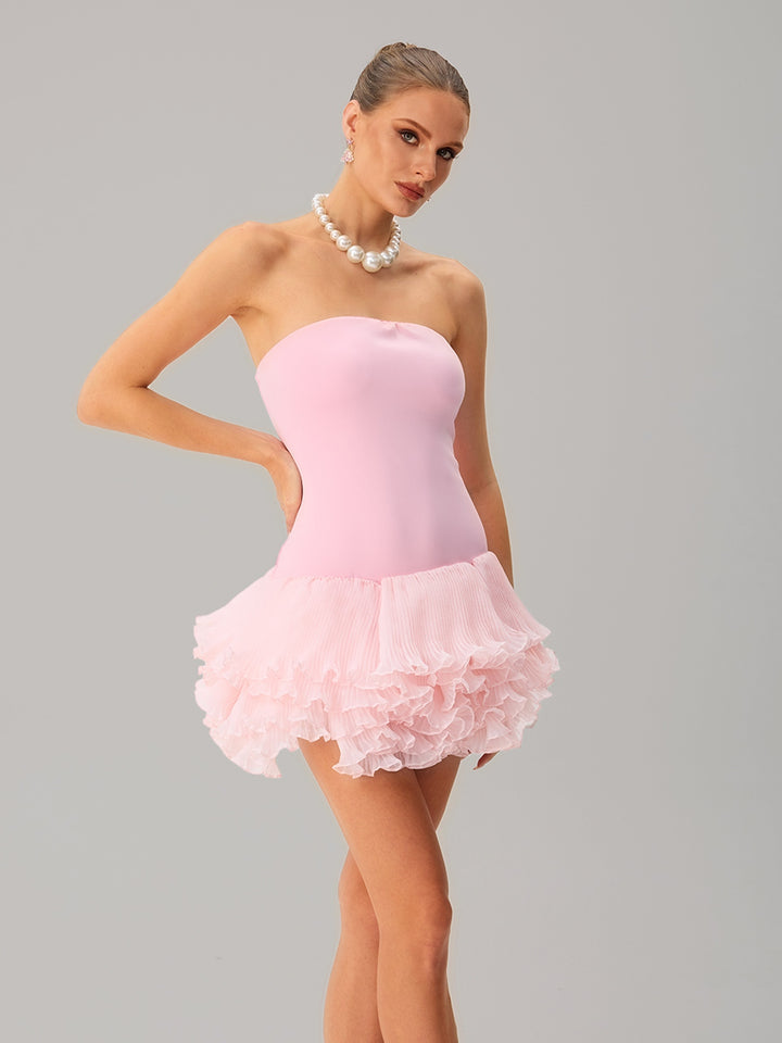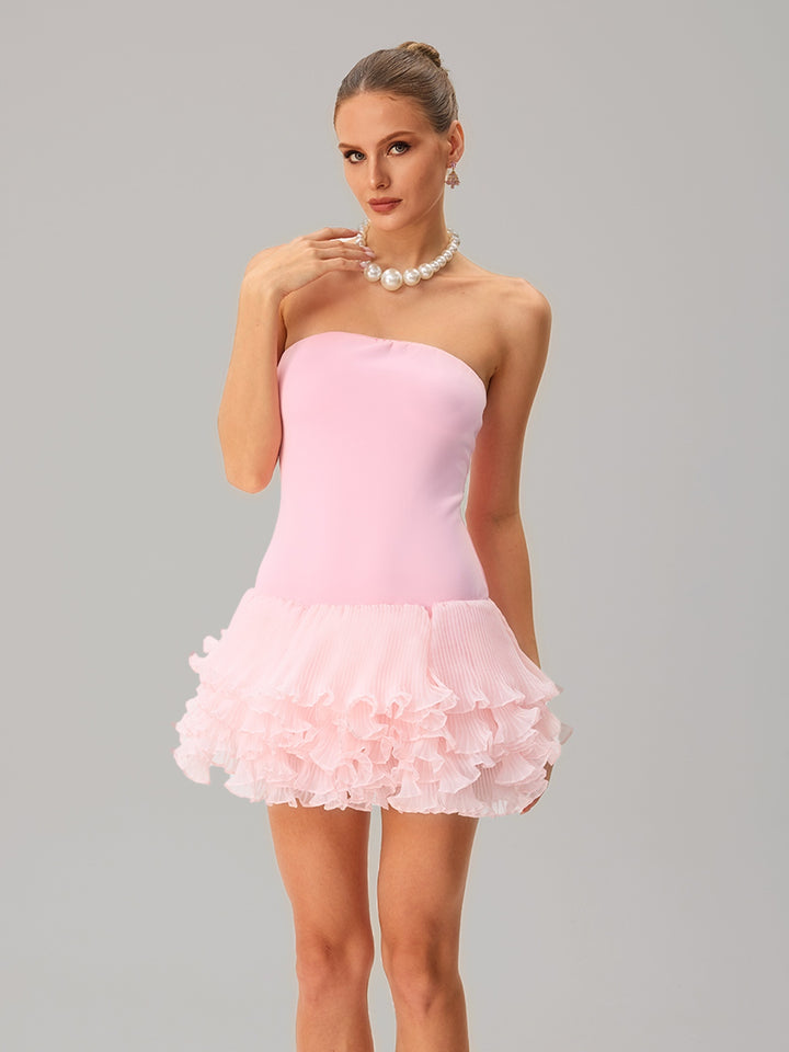 Elevate your evening look with the Jitterstar Strapless Curl Mini Dress—a stunning piece that commands attention. The elegant strapless neckline frames your shoulders beautifully, while the signature curl detailing adds sophisticated texture and movement. Cut to a flattering mini length, this dress transitions seamlessly from night out to special occasions. The refined silhouette hugs your curves in all the right places, creating an unforgettable impression. Perfect for those moments when you want to feel confident, glamorous, and absolutely irresistible.