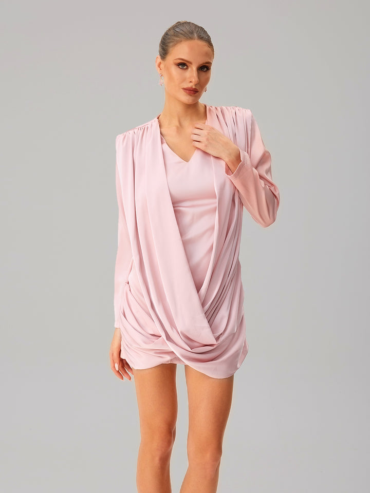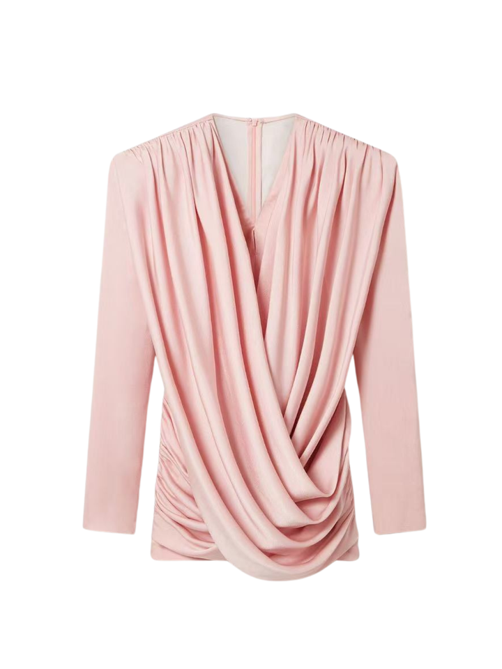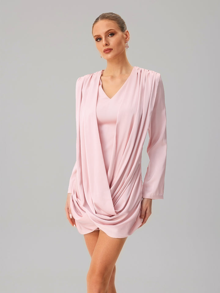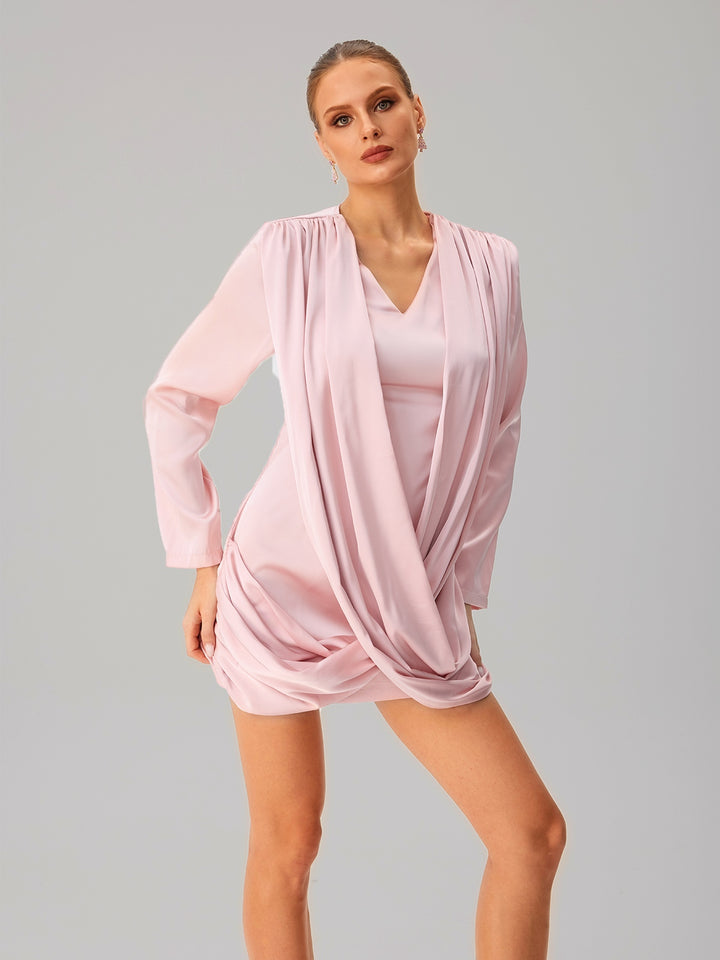 Jounceor V Neck Satin Ruched Mini Dress