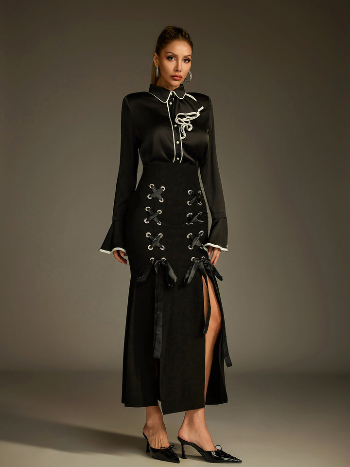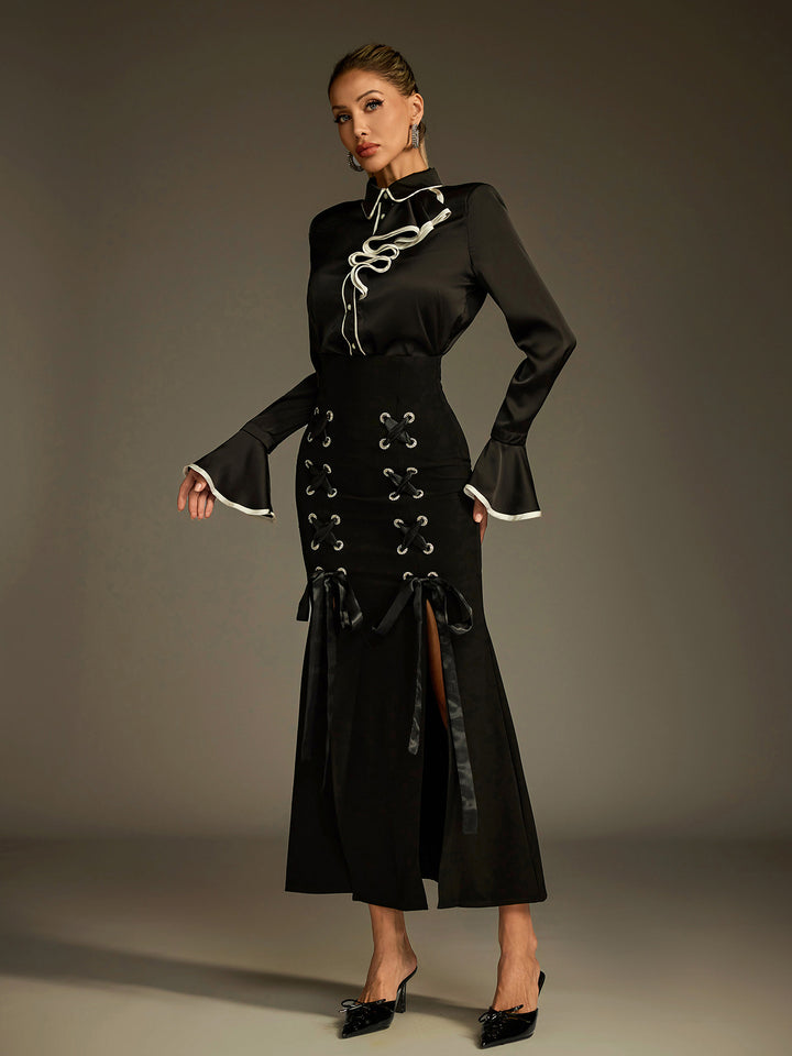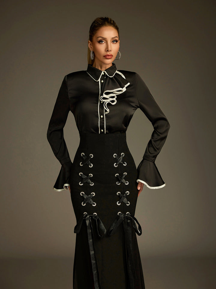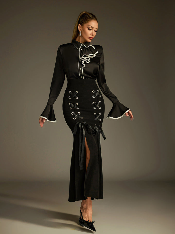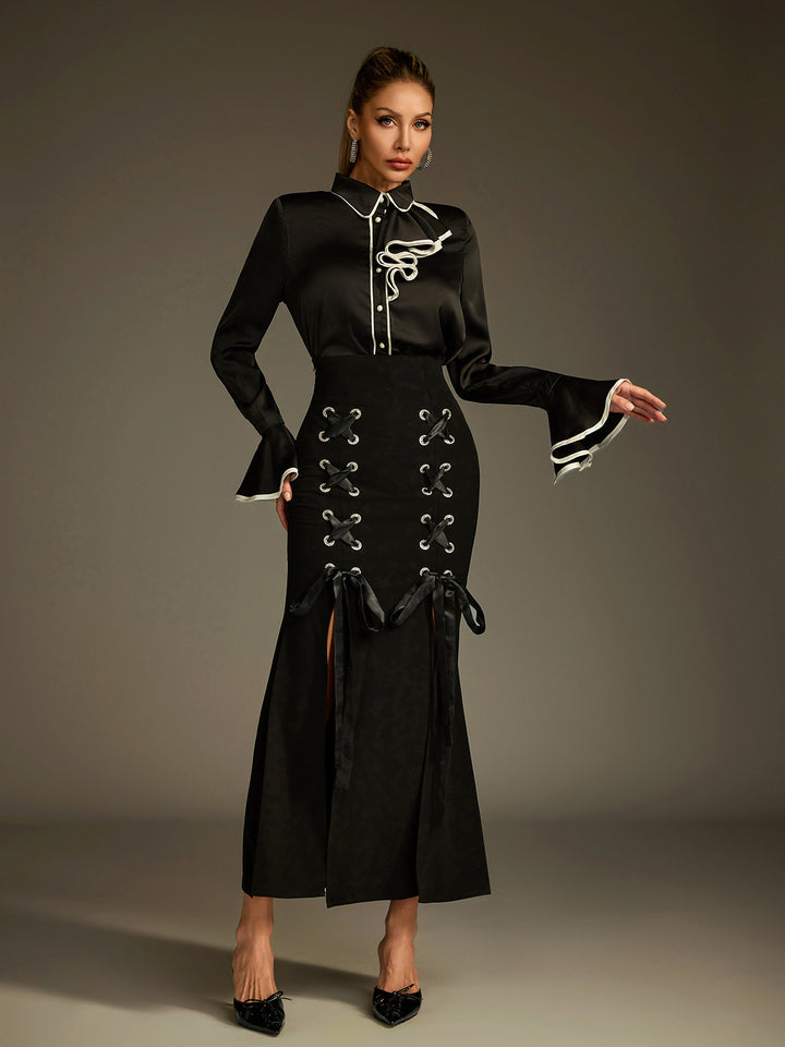 Ludwig Flare Sleeve Lace Up Skirt Set