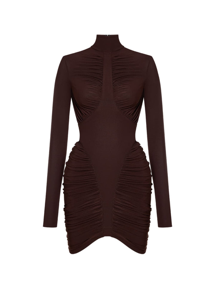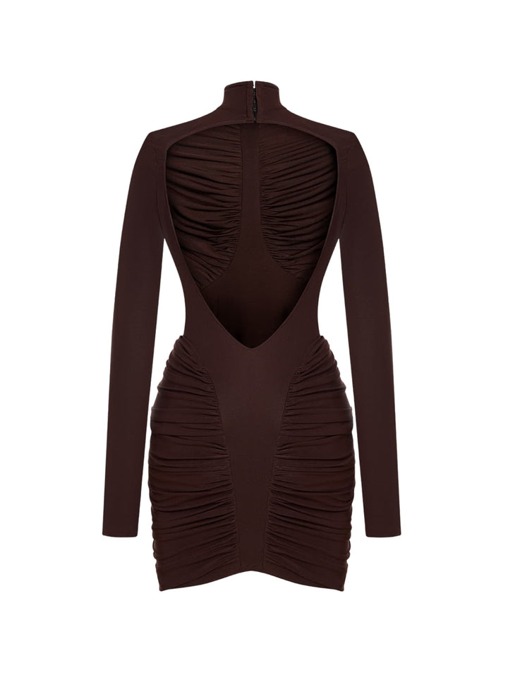 Mixotroph Backless Ruched Mini Dress In Coffee