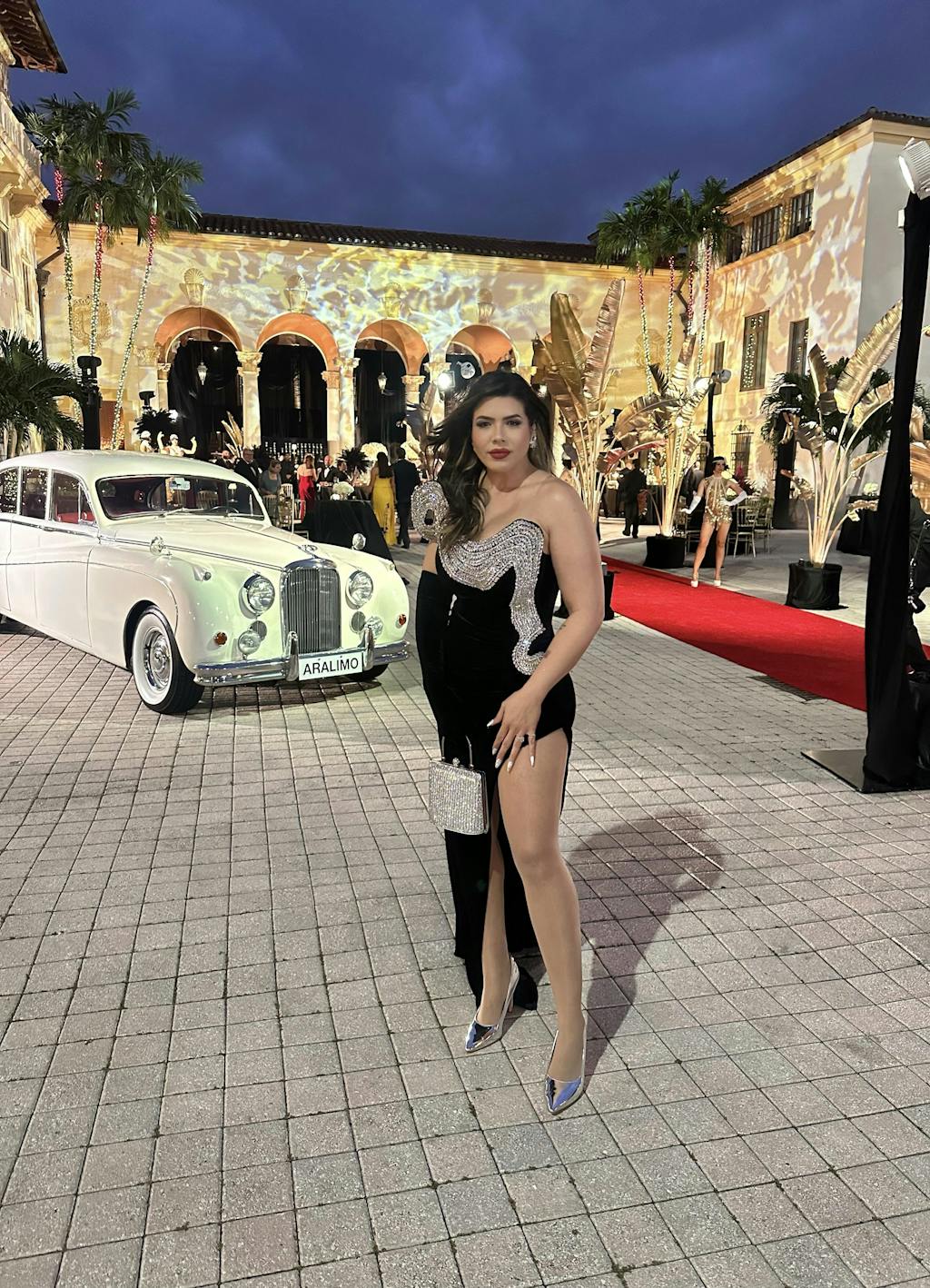 Torin Strapless Wave Crystal Velvet Maxi Dress