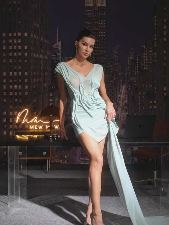 Uryna V Neck Ruched Draped Mini Dress