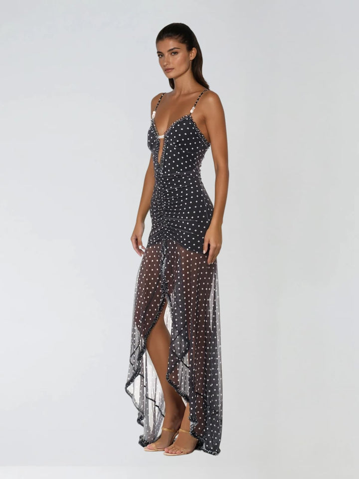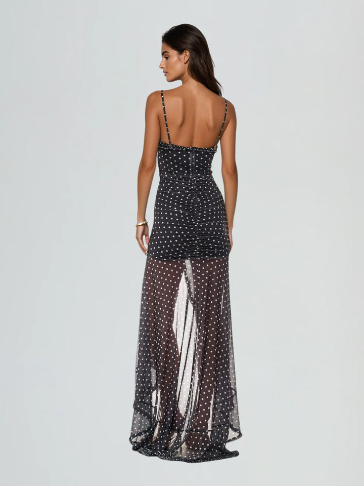 Elevate your style with the Cyalith Spaghetti Dot Split Maxi Dress, designed to combine elegance and comfort effortlessly. Featuring delicate spaghetti straps and a timeless dot pattern, this dress flows gracefully with a flattering split that adds a touch of allure. Perfect for both casual outings and special occasions, it offers a lightweight feel that moves with you, ensuring you stay stylish and confident all day or night. Embrace chic sophistication with this versatile maxi dress that highlights your natural beauty.