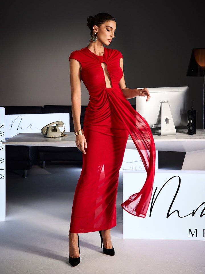 Drosyne Cutout Ruched Draped Maxi Dress In Red