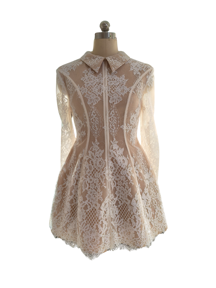 Elevate your evening look with the Dyriel Folded Collar Lace Mini Dress. This stunning piece combines delicate lace, creating a captivating texture that catches the light beautifully. The unique folded collar adds a sophisticated touch, while the mini length accentuates your silhouette for a confident, chic appearance. Perfect for special occasions or glamorous nights out, this dress ensures you'll stand out effortlessly with elegance and style.