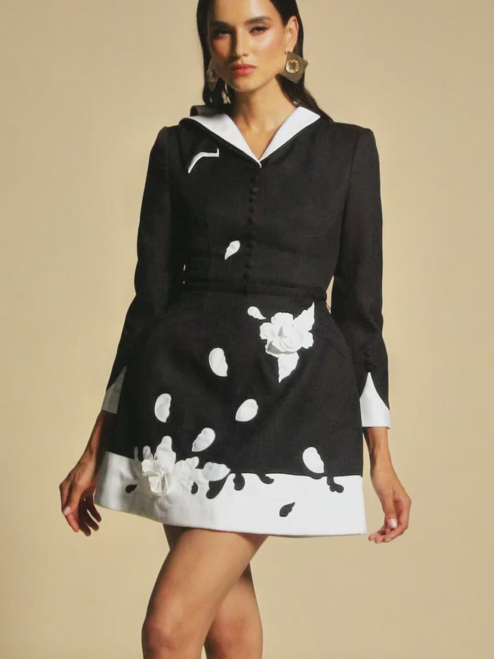 Fazra V Neck Embroidered Flower Mini Dress In Black