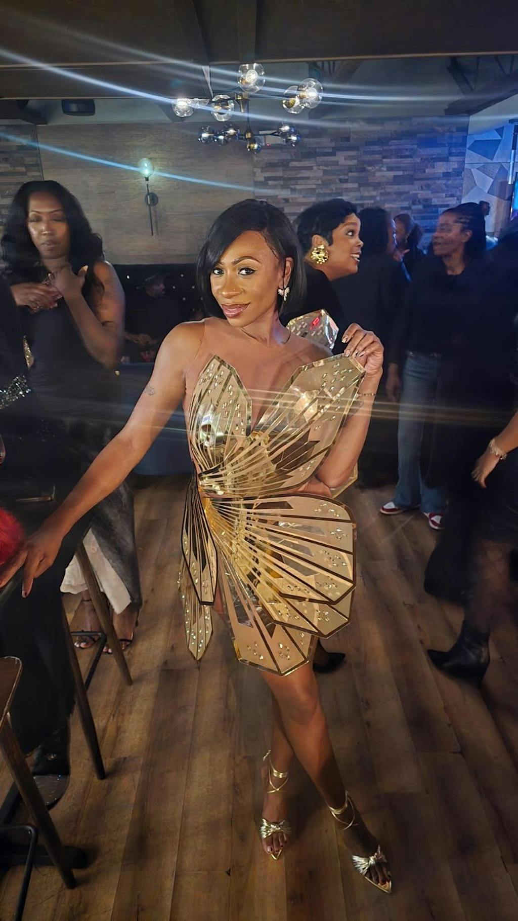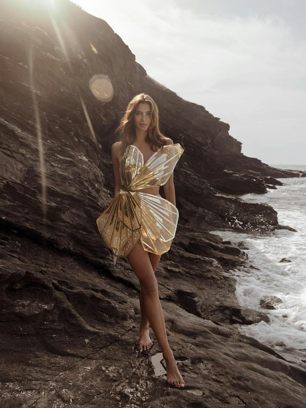 Elevate your style with the Jaidlynn Butterfly Embellished Cutout Mini Dress In Gold. The intricate butterfly embellishments and cutout design add a touch of glamour to this stunning dress. Stand out from the crowd and feel confident and elegant in this eye-catching piece.
