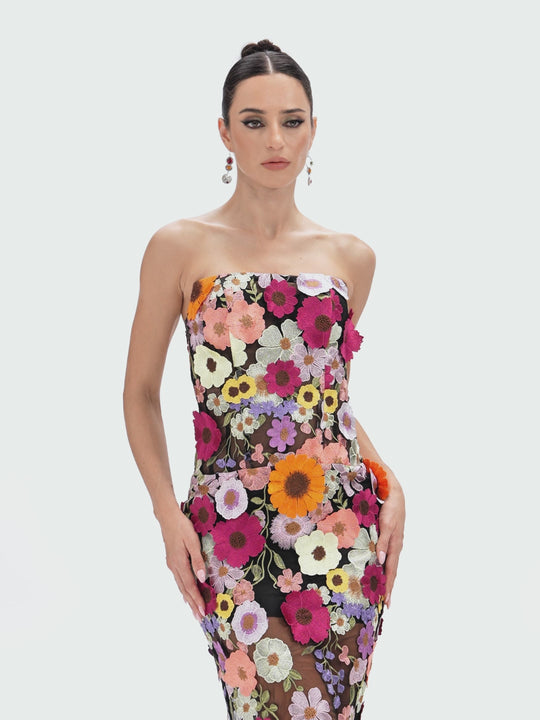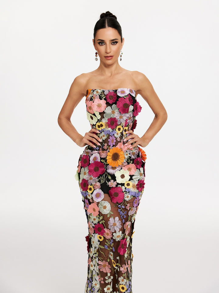 Turn heads effortlessly with the Latasha Strapless Flower Embroidered Maxi Dress. This elegant dress features intricate floral embroidery that adds a touch of romance and sophistication. Its strapless design highlights your shoulders and neckline, while the flowing maxi length offers graceful movement and a flattering silhouette. Perfect for special occasions or stylish evenings out, this dress combines timeless beauty with standout details to make you feel truly unforgettable.