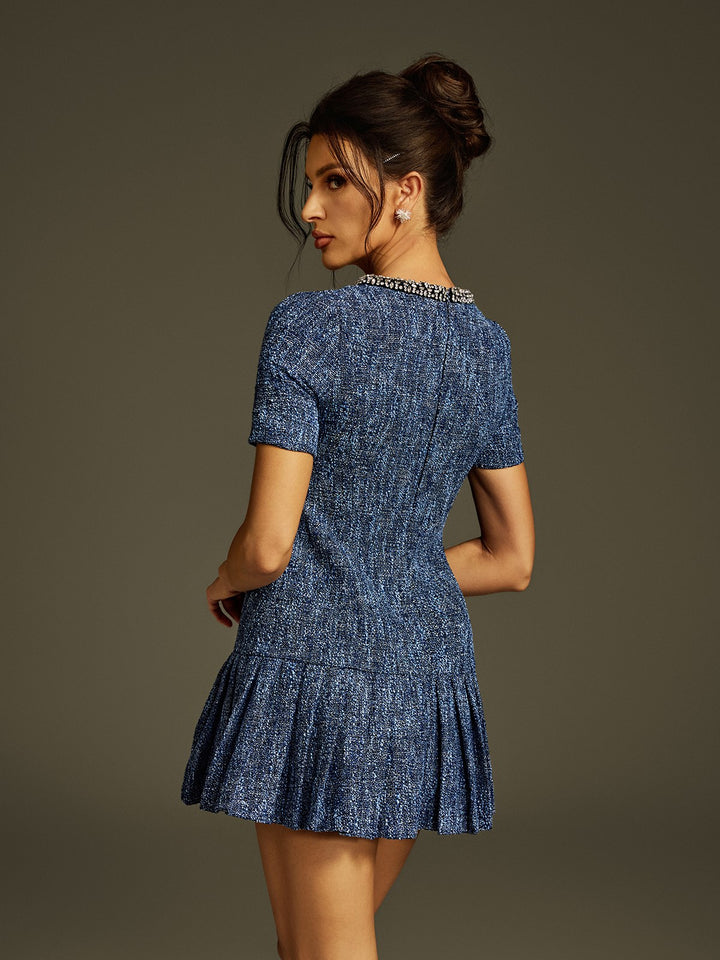 Make a stylish statement with the Lieux Short Sleeve Tweed Mini Dress. Featuring classic tweed fabric and a flattering mini length, this dress combines timeless sophistication with contemporary charm. Its short sleeves and tailored fit create a polished look that effortlessly transitions from day to night, perfect for elevating your wardrobe with understated elegance.