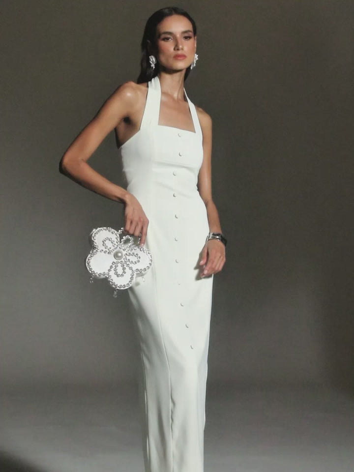 Step into effortless elegance with the Ogen Halterneck Button Maxi Dress. Featuring a flattering halterneck design and a full-length silhouette, this dress combines comfort with sophisticated style. The button details add a touch of charm, making it perfect for both casual outings and special occasions. Embrace a look that moves gracefully with you while showcasing your chic, confident side.