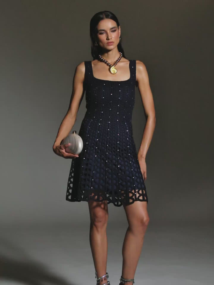 Step into the spotlight with the Olof Square Neck Rhinestone Mini Dress. This dazzling piece features a sharp square neckline that frames your décolletage with elegance, while sparkling rhinestones catch every eye. Its mini length adds a flirty touch, perfect for parties or special nights out. Designed to highlight your silhouette, this dress effortlessly combines glamour and confidence for unforgettable style.