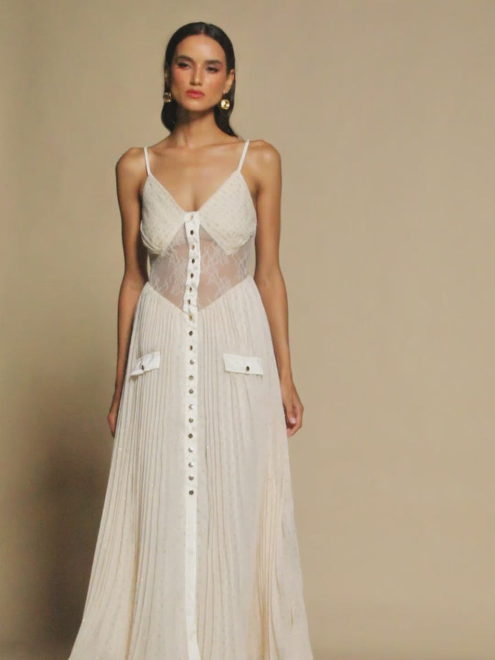 Onur Spaghetti Lace Button Maxi Dress