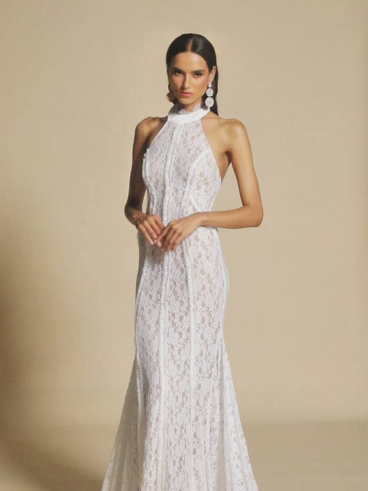 Elevate your elegance with the Oorjita Halterneck Lace Maxi Dress. Crafted with intricate lace and a flattering halterneck design, this dress offers both sophistication and comfort. Its flowing maxi length enhances your silhouette, making it perfect for special occasions or evening events. Feel confident and graceful wherever you go in this stunning statement piece.