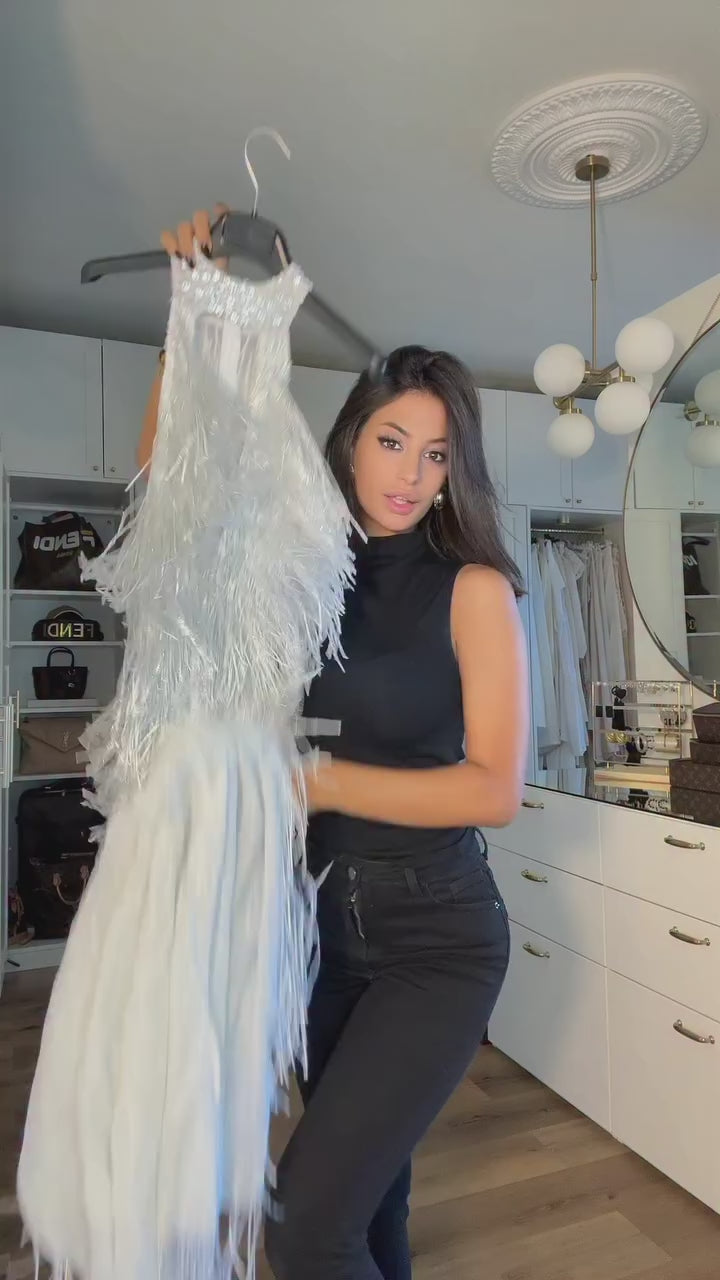 Celena Pearl Fringe Mini Dress In White