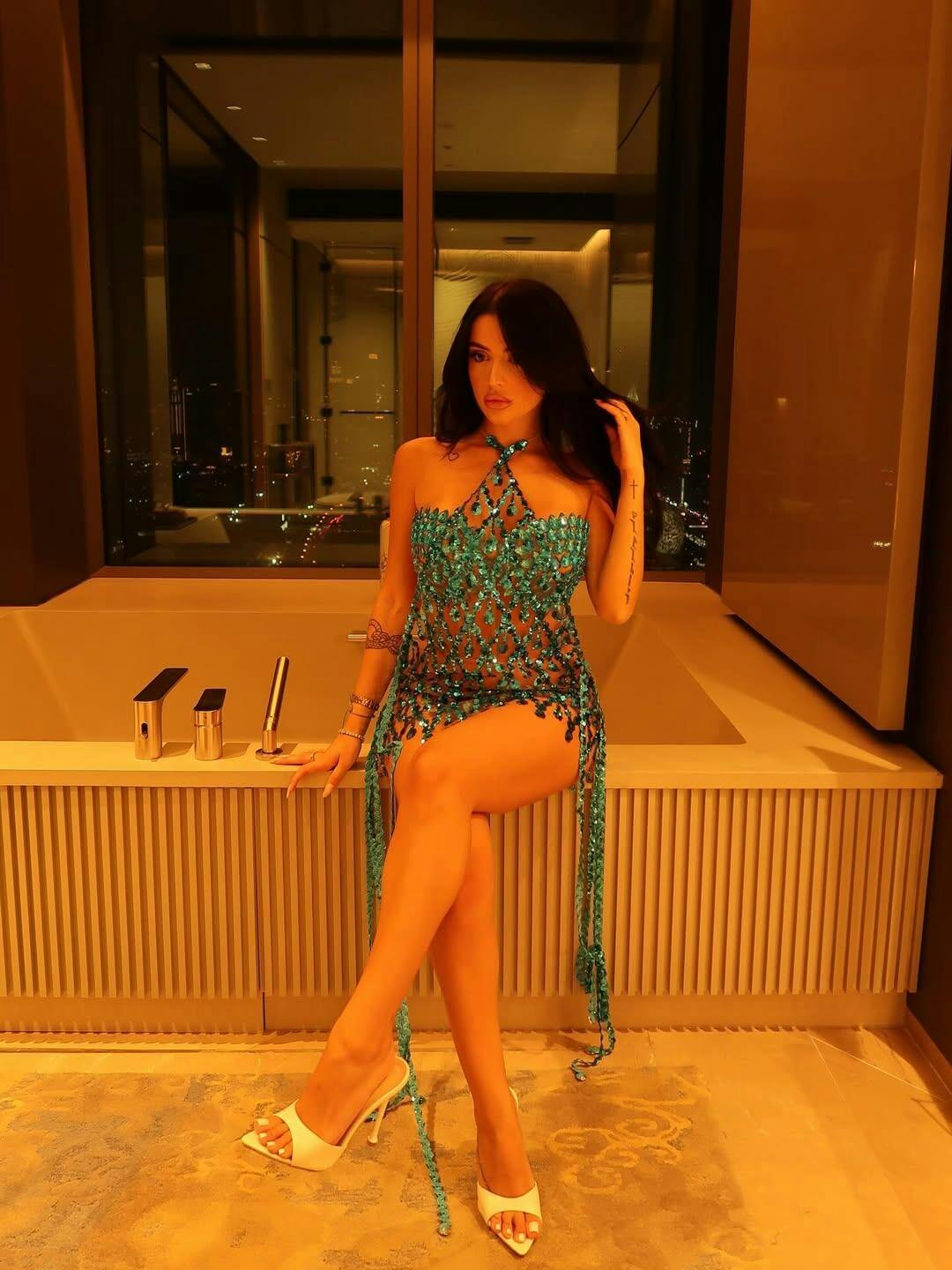 Préparez-vous à faire tourner les têtes et à vous démarquer avec notre mini-robe Diego à paillettes et strass ! Sa superbe couleur bleue et ses détails complexes en strass et franges captiveront la lumière et éblouiront tous ceux qui la verront. Idéale pour une soirée ou une occasion spéciale, cette robe allie élégance et fantaisie pour un look vraiment époustouflant.
