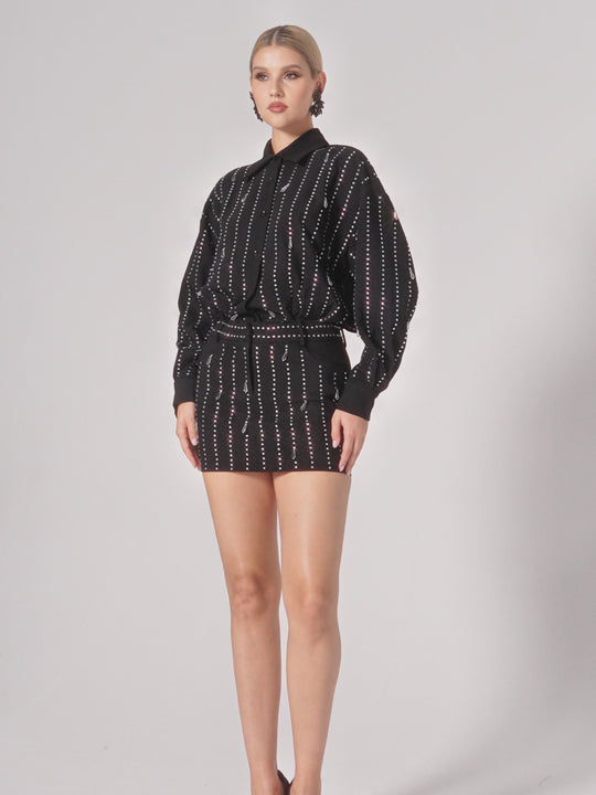 Eilley Collar Rhinestone Shirt Dress