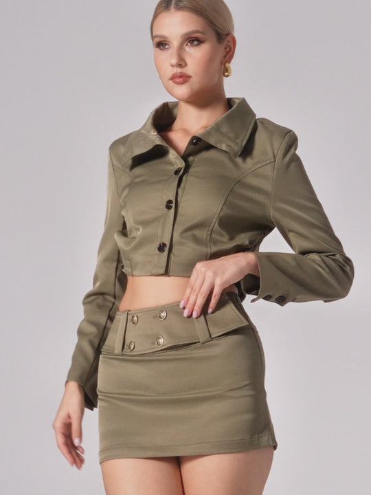 Discover the ultimate power pairing with the Eirwen High Neck Trench Coat Skirt Set—a coordinated ensemble that delivers maximum impact with minimal effort. The structured trench coat features a commanding high neckline that frames your face beautifully while exuding timeless authority. Paired with a complementary skirt, this set creates a cohesive, intentional look that speaks to your refined taste and attention to detail. Whether you're navigating important meetings, attending upscale events, or simply elevating your everyday aesthetic, this coordinated duo works together to amplify your presence. Skip the styling guesswork and invest in a set that guarantees you'll look polished, put-together, and undeniably confident every single time you wear it.