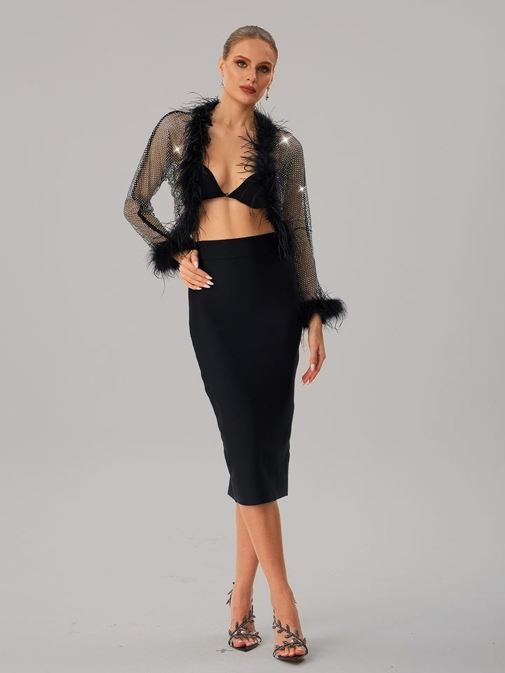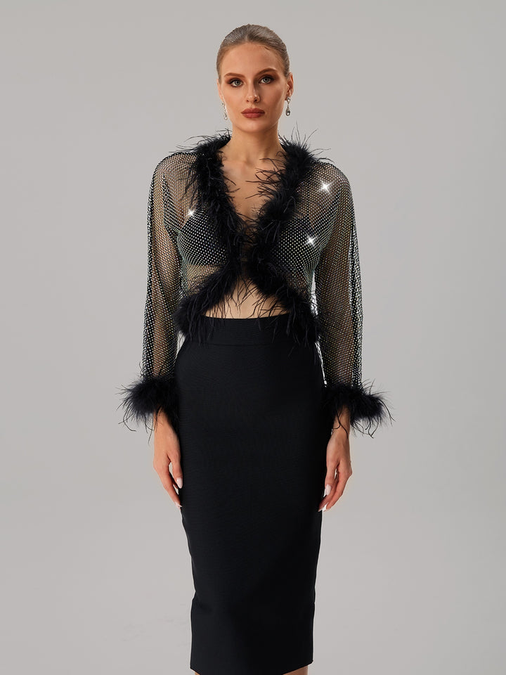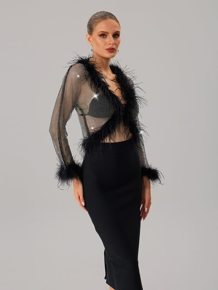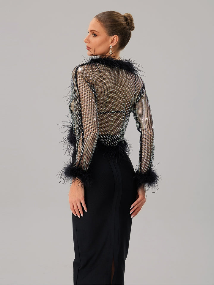 Jjetmixa Rhinestone Mesh Faux Fur Top