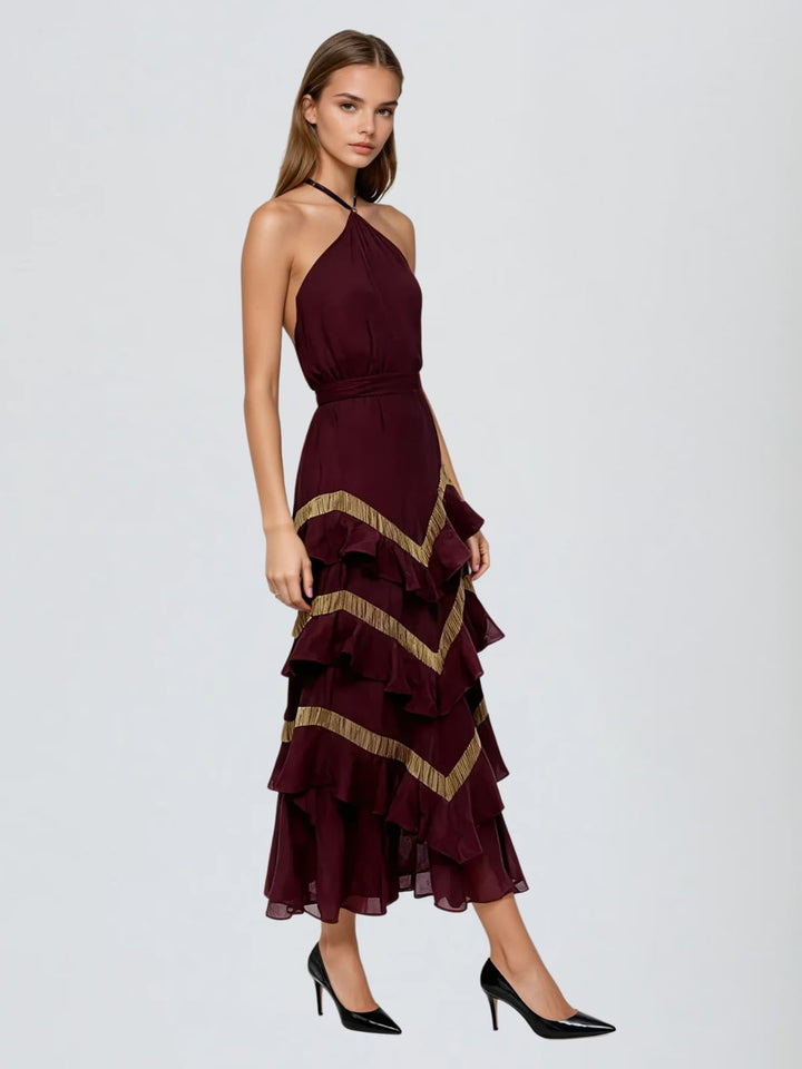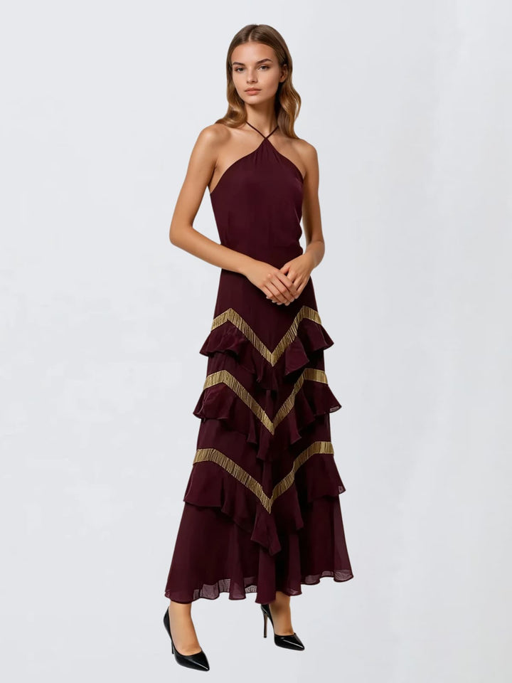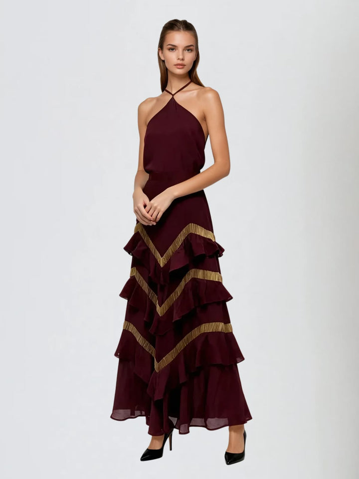 Elevate your evening wardrobe with the Lagrangea Halterneck Tiered Maxi Dress—a stunning statement piece that commands attention. The flattering halterneck design frames your shoulders beautifully while the cascading tiered layers create graceful movement and dimension. Perfect for formal events, weddings, or upscale gatherings, this maxi dress combines sophisticated elegance with modern flair. The flowing silhouette flatters all body types, ensuring you feel confident and radiant. Crafted for those who refuse to blend in, this dress transforms any occasion into an unforgettable moment.