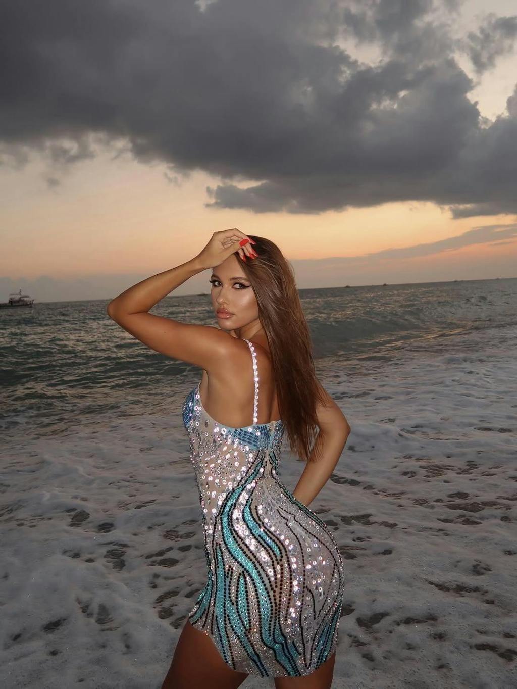 Roswitha Spaghetti Rhinestone Mini Dress In Blue