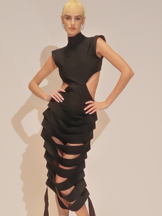 The Badane Sleeveless Cutout Bandage Midi Dress combines architectural design with contemporary elegance. Crafted from premium bandage fabric, this midi silhouette features strategic cutout detailing that creates visual interest while maintaining sophisticated proportions. The sleeveless design offers versatility for layering or standalone wear, making it suitable for evening events, upscale dinners, or fashion-forward occasions. The structured bandage construction provides a flattering fit that moves with your body, while the midi length delivers timeless appeal. Perfect for those seeking a statement piece that balances modern edge with refined style.