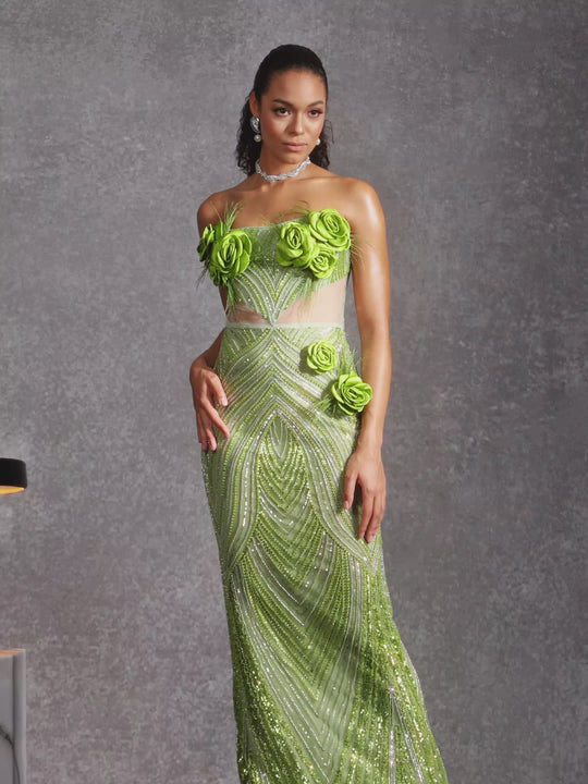 Bayram Strapless Flower Sequin Maxi Dress