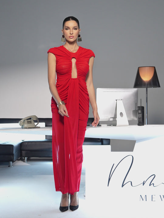 Drosyne Cutout Ruched Draped Maxi Dress In Red