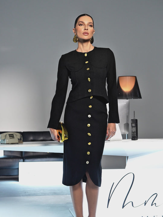 Fevziye Long Sleeve Button Lace Up Skirt Set