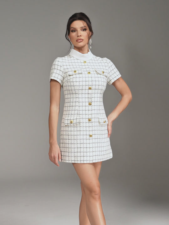 The Lixue High Neck Tweed Check Mini Dress blends classic tweed texture with a modern high neck design for a chic, polished look. Its tailored fit and timeless check pattern create a stylish outfit perfect for both professional settings and social occasions. Step out with confidence and elevate your wardrobe with this sophisticated mini dress.