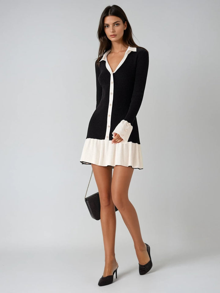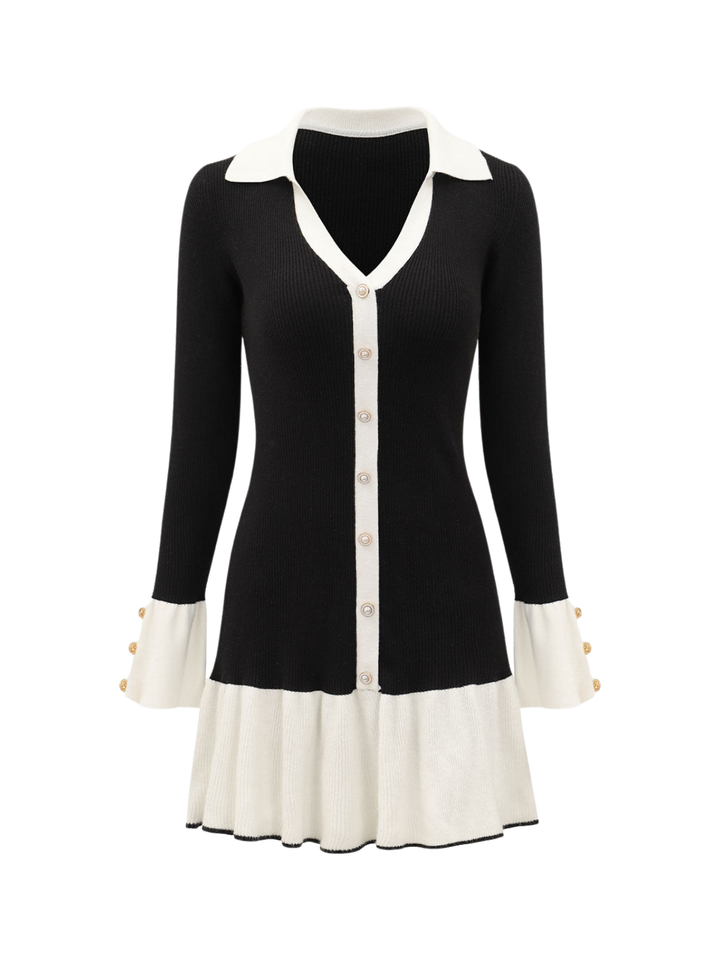Logistica Bell Sleeve Ruffle Knit Mini Dress
