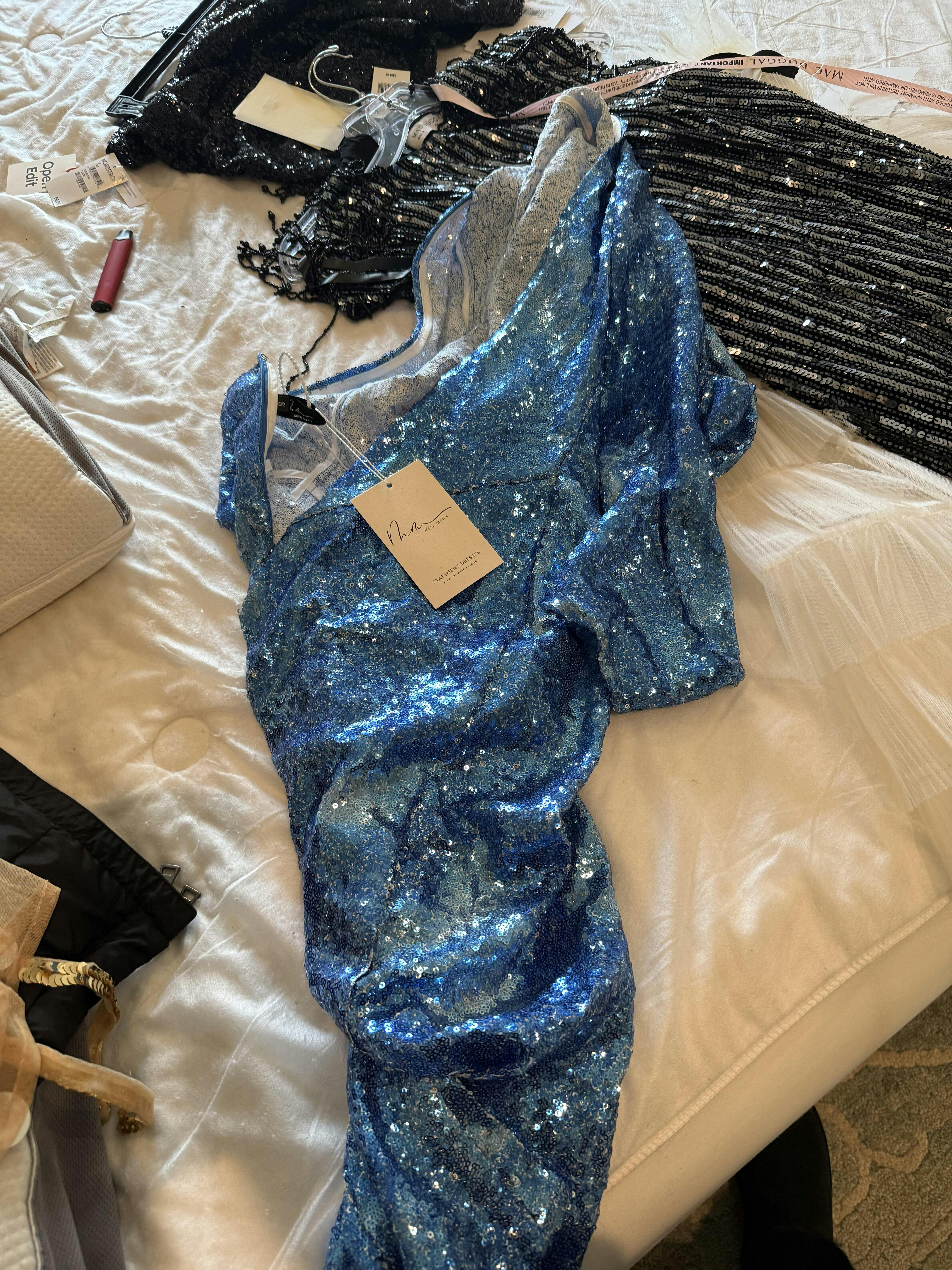 Nebraska Ombre Long Sleeve Hooded Maxi Dress In Sapphire